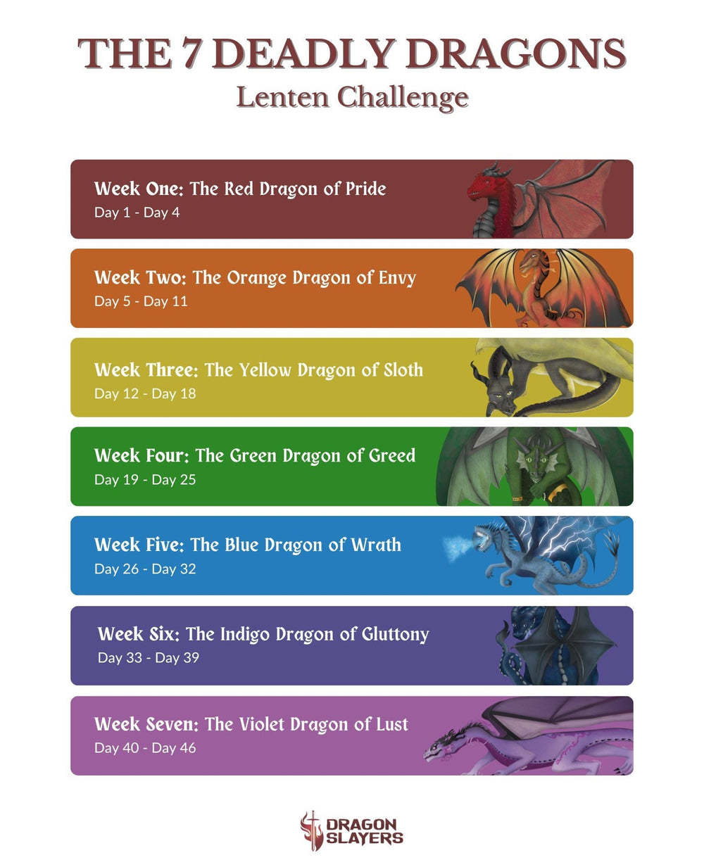 Download a printable guide to follow along each day of Lent, track challenges, and journey through the 7 Deadly Dragons.